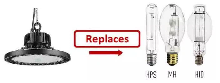 تستخدم تركيبات الإضاءة التقليدية ذات الفتحات العالية والمنخفضة مصابيح التفريغ عالي الكثافة (HID) التي تنتج الضوء عن طريق إنشاء قوس كهربائي يتدفق بين قطبين من التنغستن داخل أنبوب قوس شفاف أو شفاف. تم استخدام تركيبات الإضاءة HID ، مثل بخار الزئبق ، والصوديوم عالي الضغط ، ومصابيح الهاليد المعدنية على نطاق واسع في إضاءة المستودعات نظرًا لكميتها القصوى من الضوء الناتج. ومع ذلك ، فإن الإضاءة HID لها عيوب متأصلة مثل الاستهلاك المفرط للطاقة ، وسوء عرض اللون ، وانخفاض قيمة لومن المصباح (LLD) ، وقابلية التلف من الصدمات والاهتزازات ، وعدم اختيار درجات حرارة اللون ، وفقدان بصري مرتفع ، وقدرات محدودة على التعتيم من حيث التوقيت والمدى ، وعدم وجود كوابح إلكترونية عالية الكفاءة لتشغيل مصادر الضوء HID.